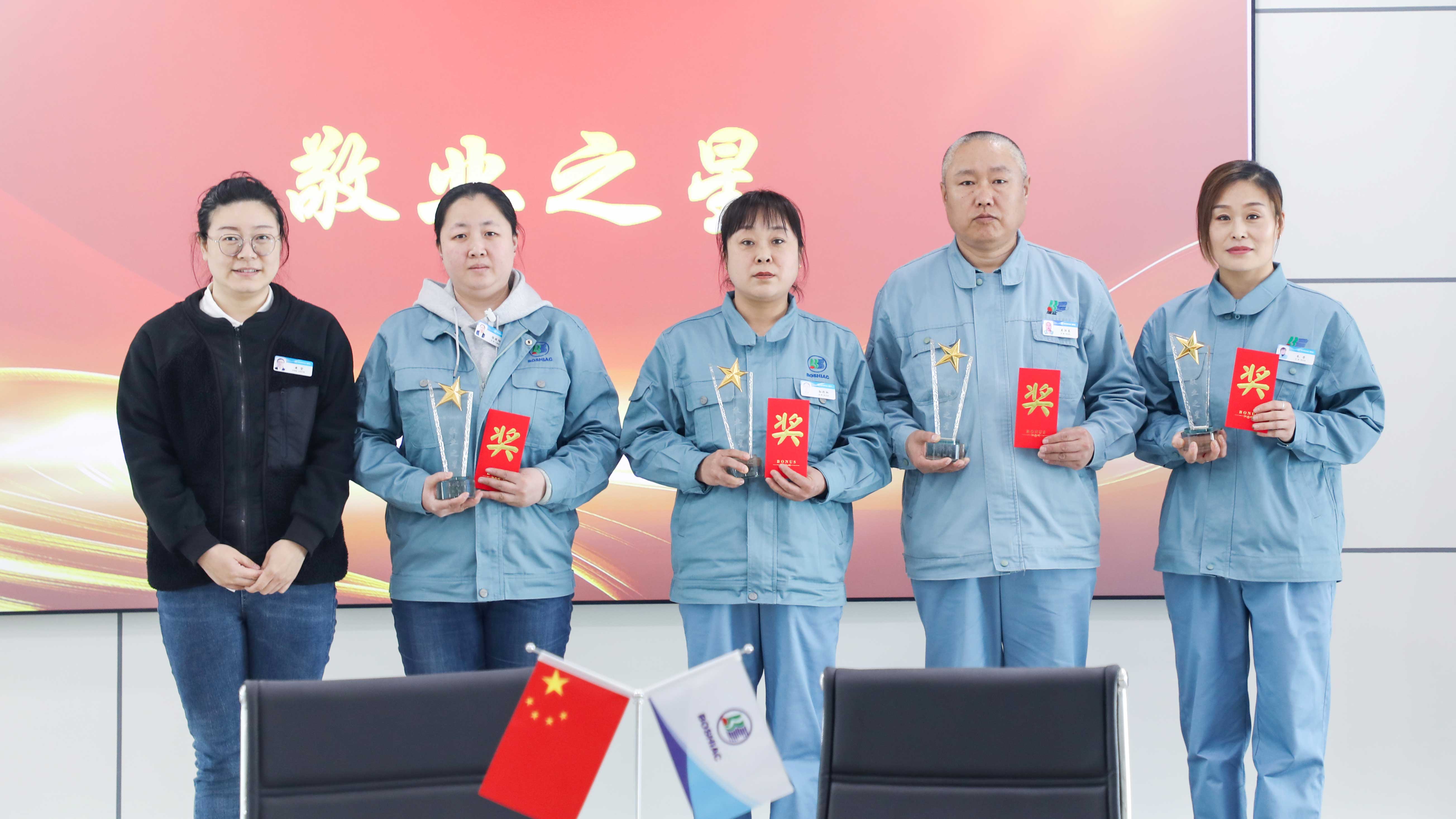 4月13日下午13:30,后勤組織獲獎者及員工代表27人在博實樓多功能廳召開“閃閃發(fā)光獎”頒獎儀式,公司行政總監(jiān)劉曉春、行政事務部部長史偉鍵、人力資源部部長李真真、企劃組負責人黃堃、餐廳負責人孟艷應邀參加頒獎活動并為獲獎者頒獎。