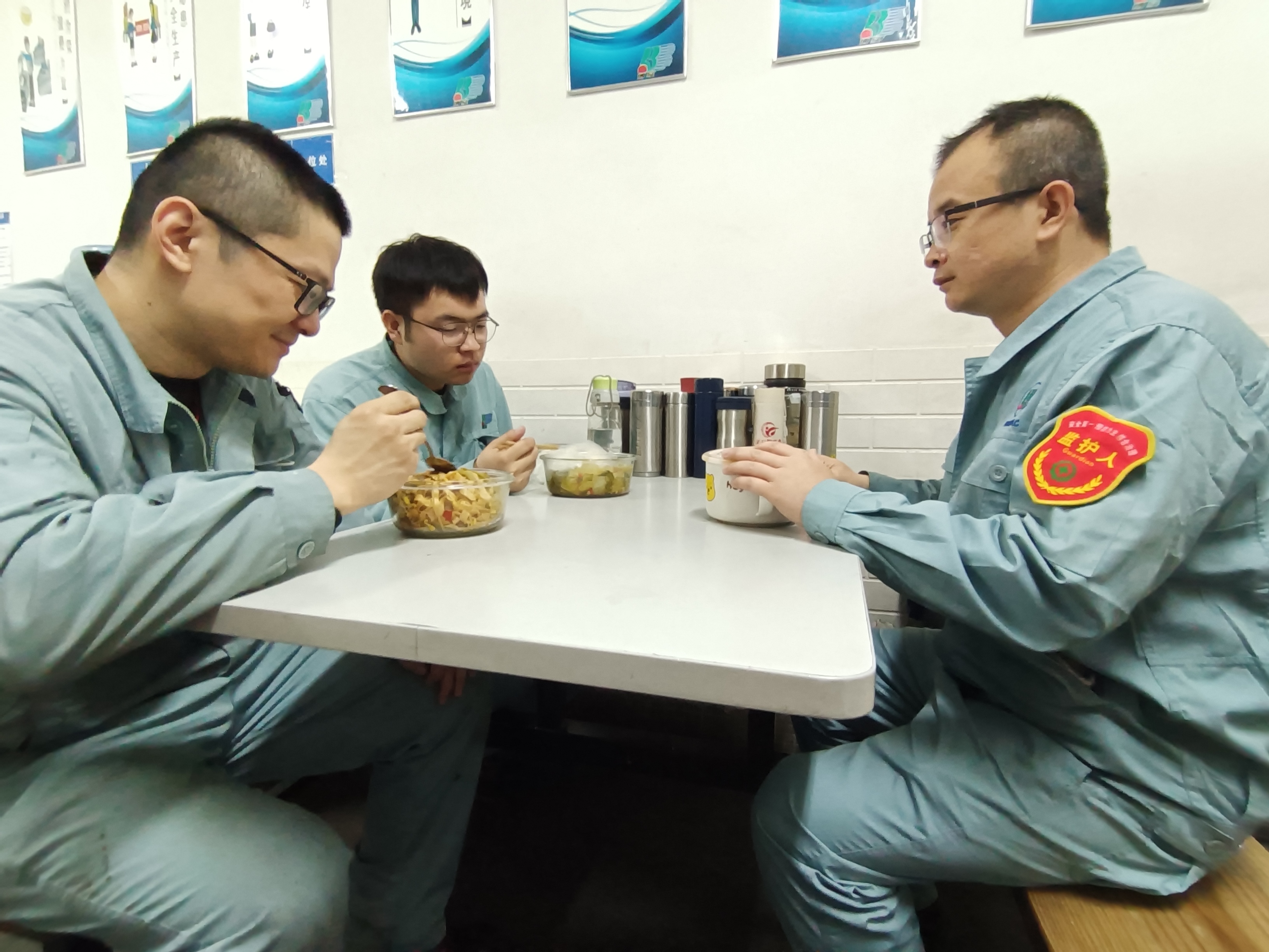 你看,他們新老搭檔,或兩人一組,或三人一組,提著工具箱走向后處理設備檢修點,分散在干燥機、擠壓機、熱箱、旋轉閥等設備開始了一天的檢修工作。