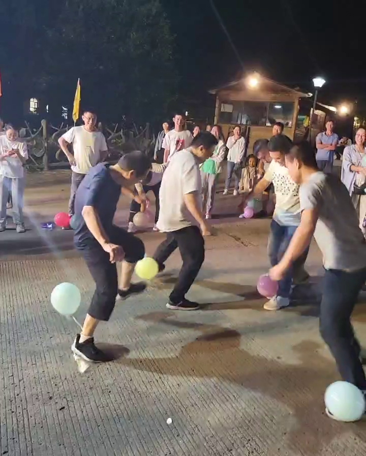 揮別一天的疲憊,酒足飯飽后,夜幕降臨,組織者提前將場地布置完畢,豐厚的獎品也被放置在舞臺旁邊。待所有人聚集到了篝火廣場上,隨著主持人一聲預(yù)備、開始,團建游戲一觸即發(fā)。場上你追我趕,場下吶喊助威,玩得不亦樂乎,更有感興趣的小朋友們也加入了“戰(zhàn)斗”。勝利者拿著現(xiàn)場發(fā)放的獎品,場內(nèi)的氣氛被推向了高潮。