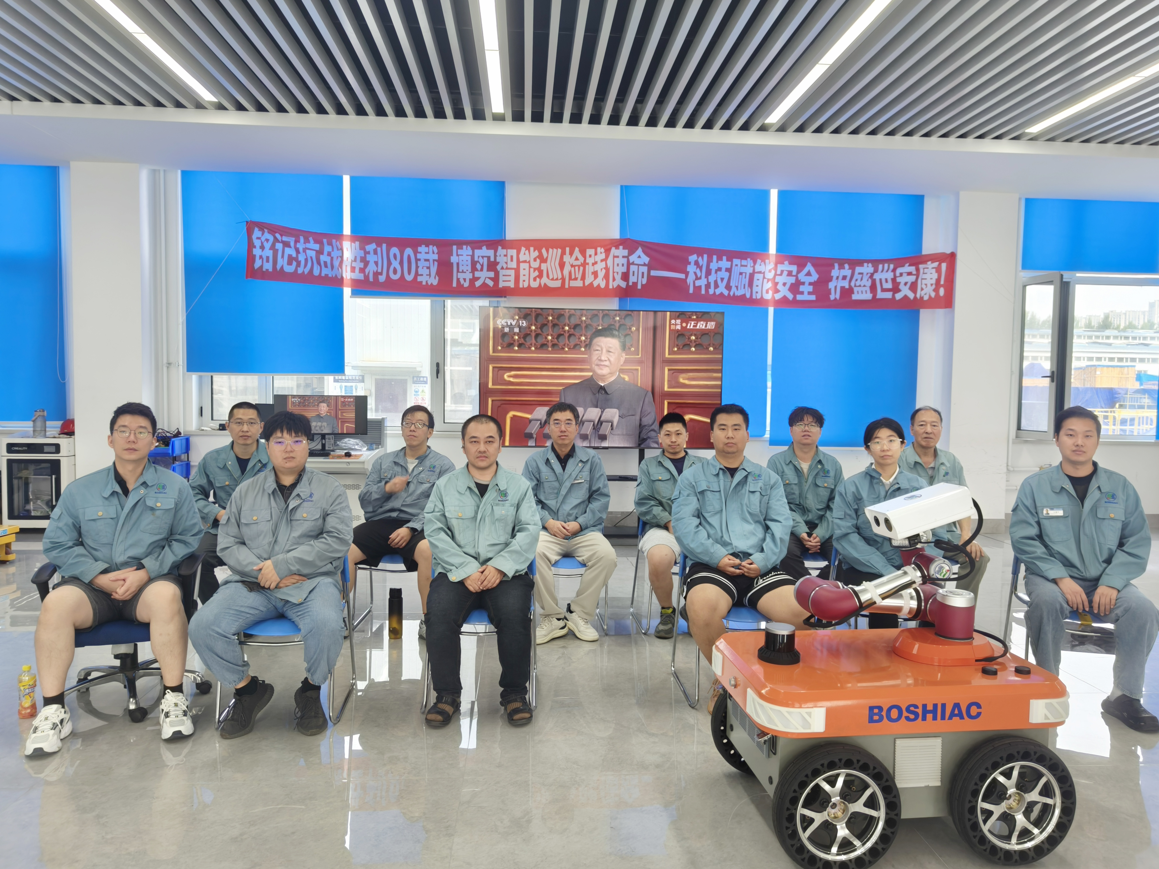 9月3日,紀念中國人民抗日戰爭暨世界反法西斯戰爭勝利80周年閱兵式在北京天安門廣場隆重舉行。博實全體員工在公司多個會議室及車間共同觀看了這一盛大直播盛況,共同見證了這一莊嚴而激動人心的歷史時刻。